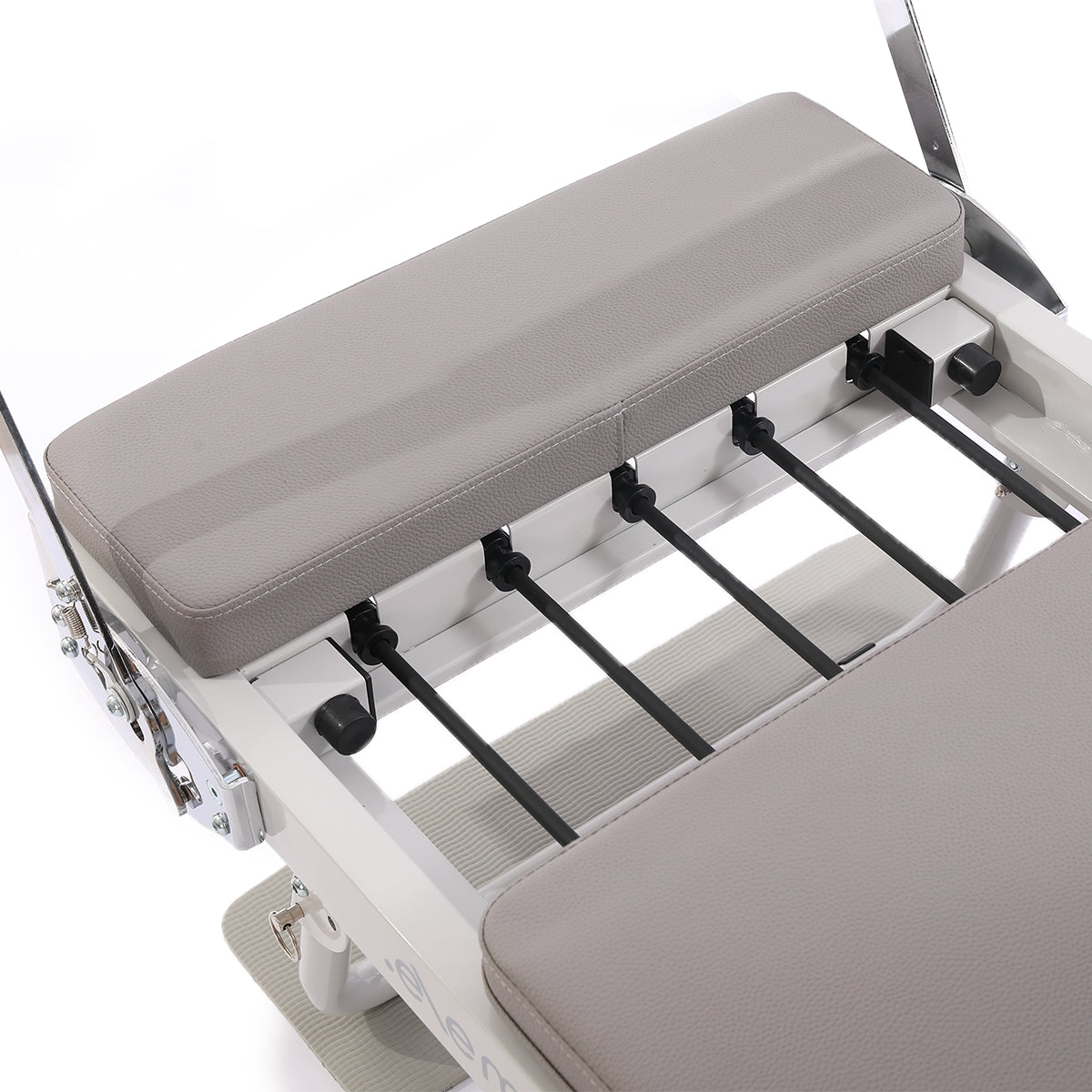 Transform your home into a professional Pilates studio with the innovative foldable Elements 300 Pilates reformer. Designed for space-efficient home workouts, this versatile machine supports users up to 120kg and features adjustable resistance levels to accommodate different fitness goals and abilities. The patented adjustable cable system ensures the Elements 300 is suitable for users of variety of heights, ensuring comfortable and effective workouts. Perfect for core strengthening, flexibility training, and full-body conditioning, this reformer brings the benefits of studio Pilates to your living space. When not in use, its clever folding design allows for convenient storage, making it ideal for homes where space is at a premium. Whether you're a Pilates enthusiast or just starting your fitness journey, the Elements 300 reformer provides everything needed for comprehensive home workouts.