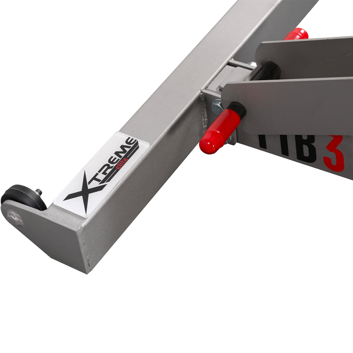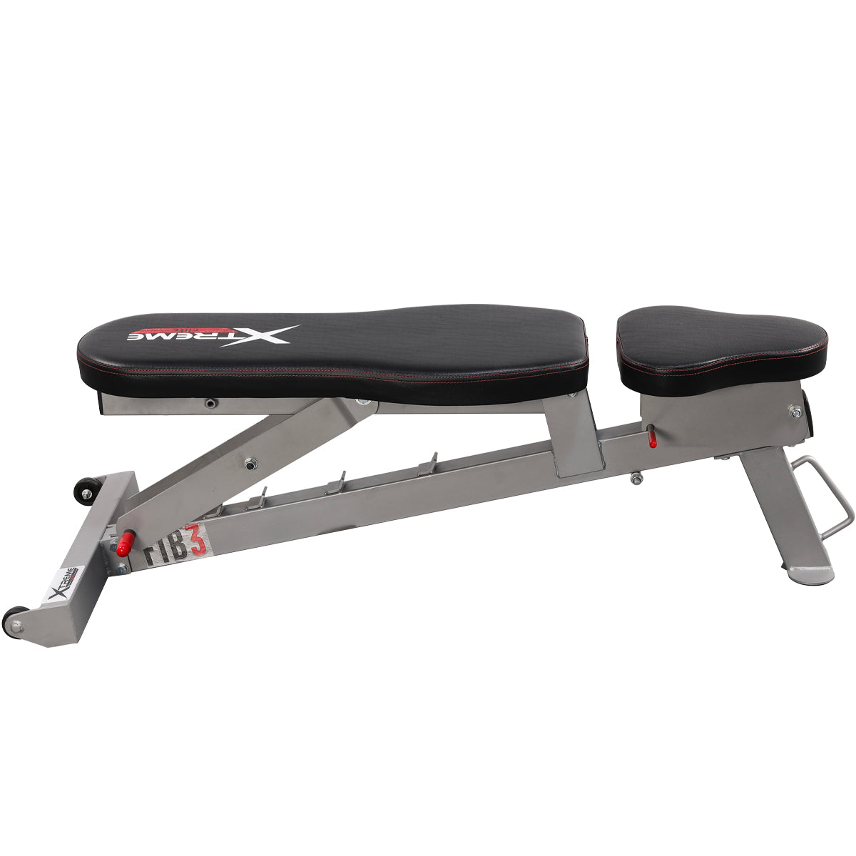 Complete a variety of dumbbell and barbell exercises at home with the Xtreme Elite FIB 3 Bench. Designed with 5 easily adjustable seat settings to suit the individual and allow for use as flat, incline and upright bench. For convenience a front handle and transport wheels also allow you to move your FIB 3 bench anywhere in your workout area making it versatile and effortless to use.