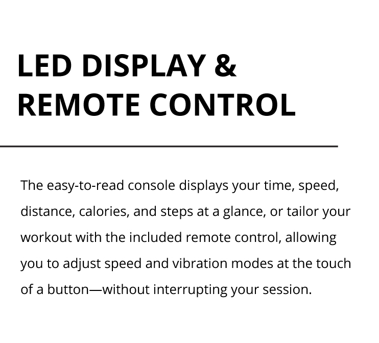 Do you want to improve cardiovascular fitness, burn extra energy, and relax your muscles all within one small package? Then the Trimline W1 is for you! The Trimline W1 Treadmill / Vibration pad utilises NEW servo motor technology, allowing the user to not only walk to burn energy and improve aerobic fitness, but it also incorporates a 4 intensity level vibration function to increase metabolic rate, improve bone density, strengthen muscles, and assist in muscle recovery, ALL in a tiny package! If you don’t have space for a treadmill as well as strength and relaxation products, then the Trimline W1 combines all these benefits and more in one!